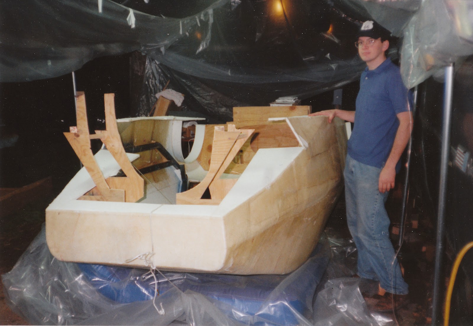 Covering the form with foamto make the sandwich. The idea was this would create a very light weight vehicle.